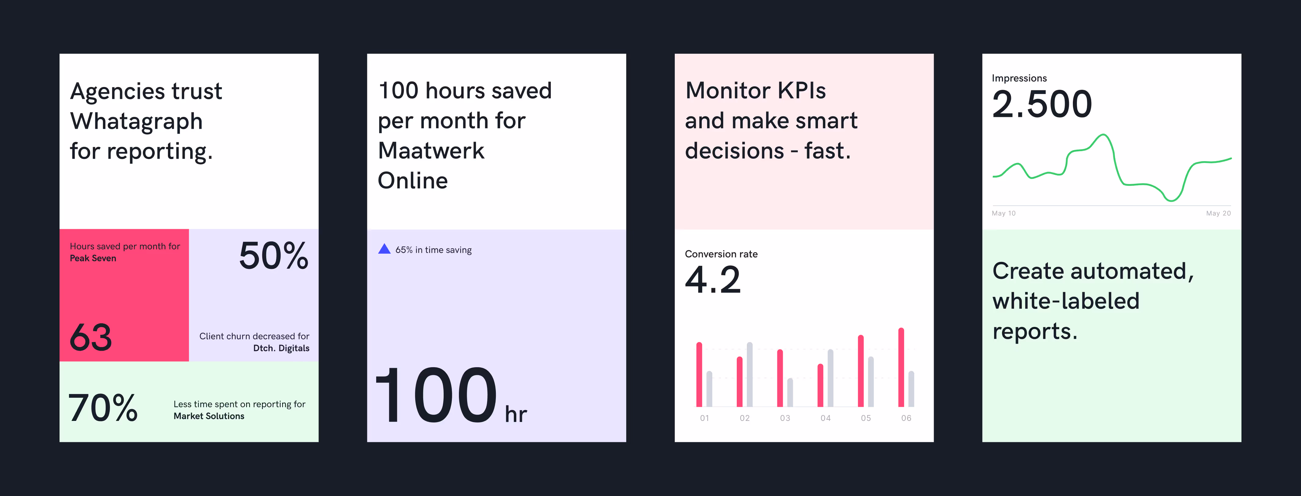 Whatagraph provides marketing professionals with one of the most intuitive marketing intelligence platforms, helping them focus on what truly matters - strategy and execution.
